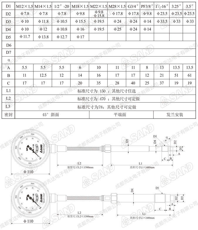 2. D2(探头膜片外径)最小可做到Ф7.8。