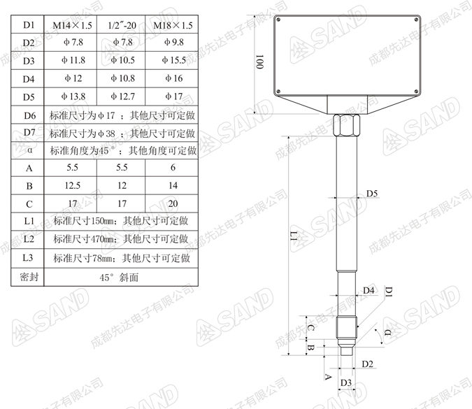 探头安装螺纹:美制1/2”-20UNF,