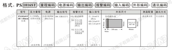 说明1:产品型号PS1016ST系列智能数字压力温度双显表