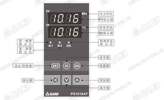 说明1:产品型号PS1016AT系列智能数字压力温度双显表
