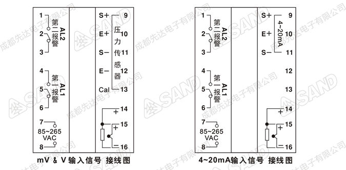 PS1016AT系列智能数字压力温度双显表-接线说明: