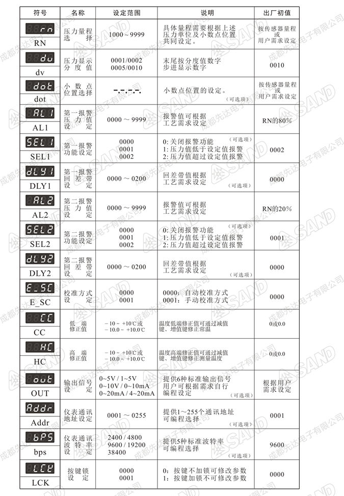 输入编码缺省,表示该表压力采集 2.0mV/V 压力传感器输入信号,