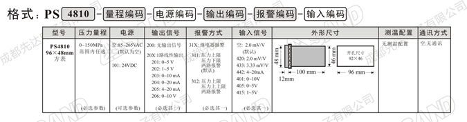 说明1:产品型号PS4810系列智能数字压力表