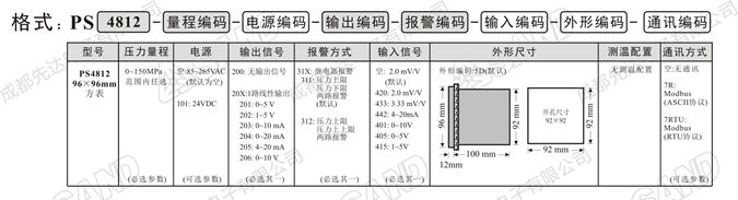 PS4812系列智能数字压力表-规格型号即订货格式说明: