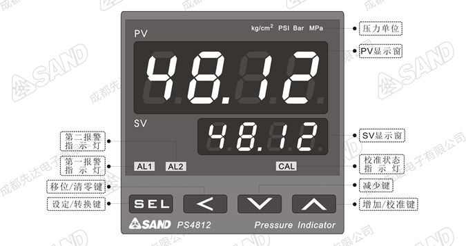 PS4812系列智能数字压力表-按键功能说明: