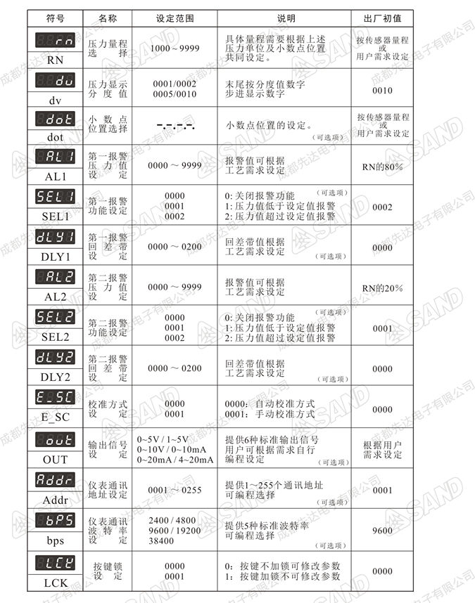 4. 仪表精度:0.2%F.S ; 采样速率:4次/秒;压力示值:-100~9999;