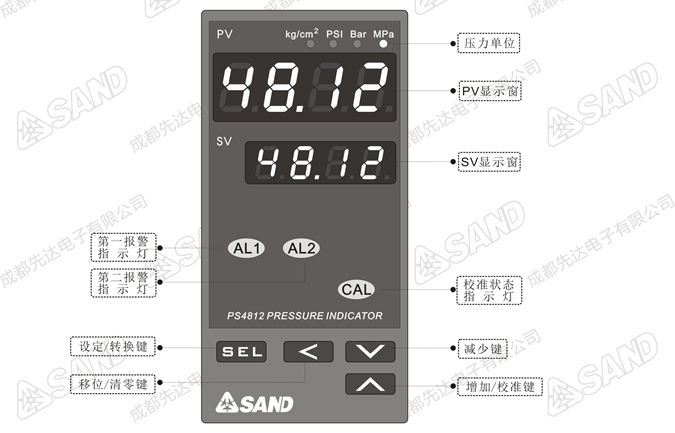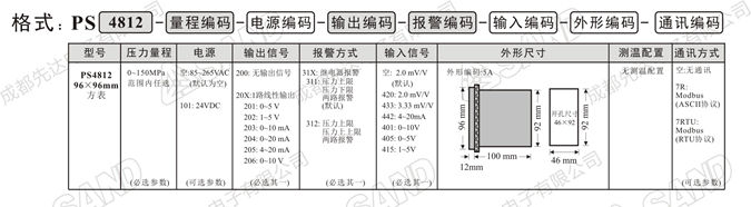 说明1:产品型号PS4812系列智能数字压力表