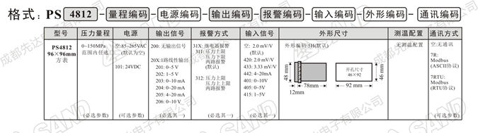 PS4812系列智能数字压力表-规格型号即订货格式说明: