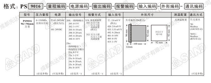 PS9016系列智能数字压力调节器-规格型号即订货格式说明: