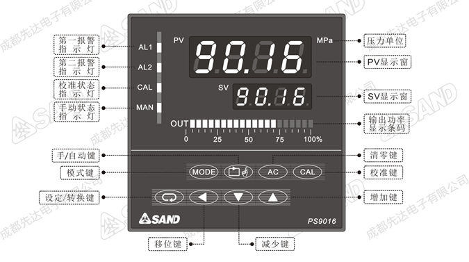 2. 面板按键操作,实现清零,手动/自动切换及量程等内部参数的设置;