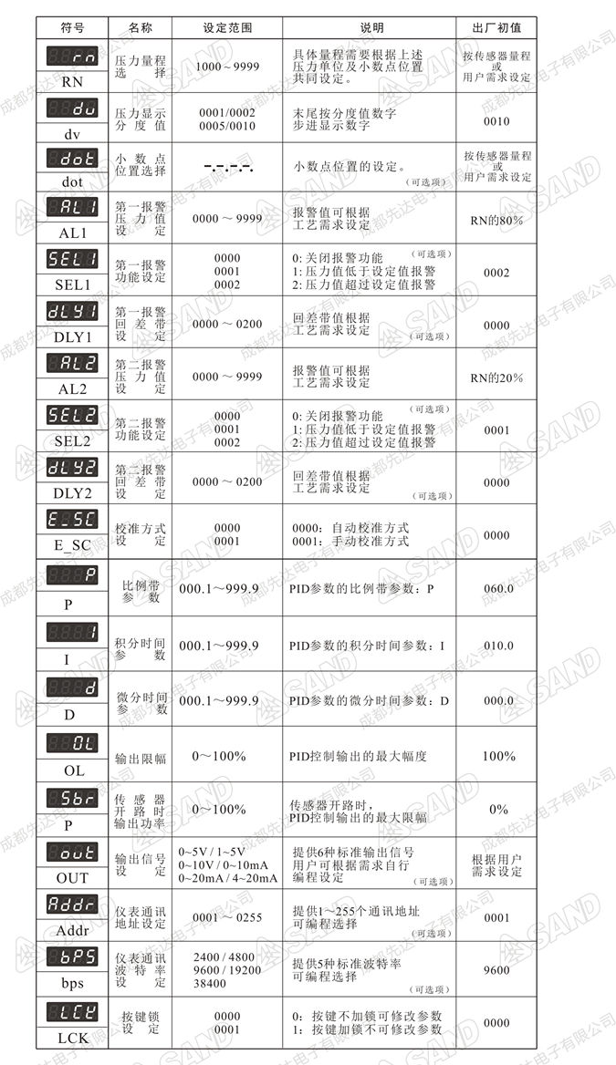 “205”表示该表采用4~20mA压力PID控制信号输出,