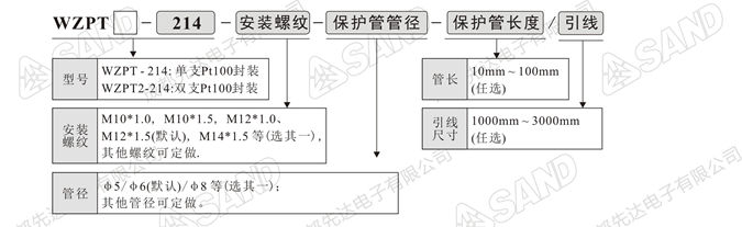 说明1:产品型号WZPT-214型压簧式铠装铂热电阻温度传感器;