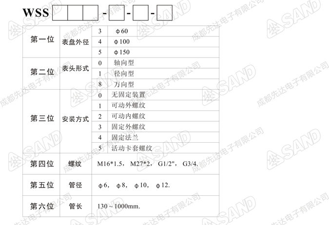 WSS系列双金属温度计-规格型号即订货格式说明: