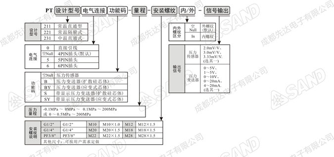 说明1:产品型号PT221S系列隔膜式现场显示压力变送器;