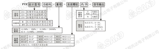 说明1:产品型号PTF211B系列 本安型防爆压力变送器;