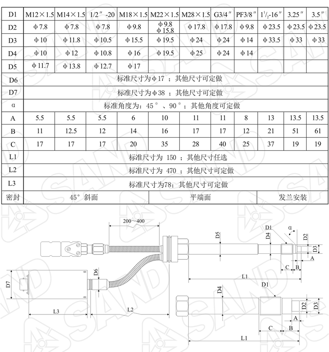 探头安装螺纹:公制M14*1.5;