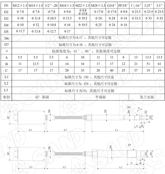 3. L1(直杆长度)、L2(软管长度)订货以10mm取整数。