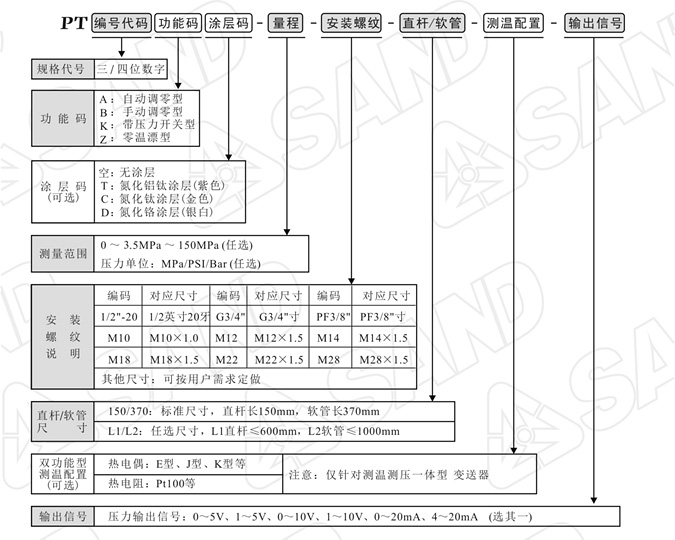 PT系列高温熔体压力传感器规格型号即订货格式说明: