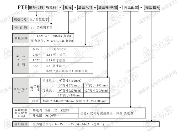 PTF系列防爆型法兰安装高温熔体压力传感器-规格型号即订货格式说明: